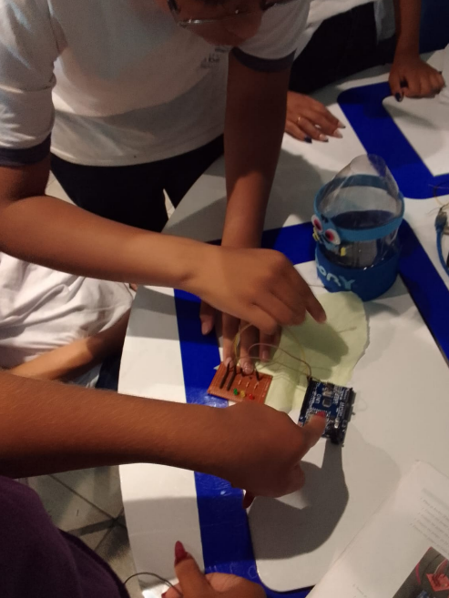 Durante o encontro, os estudantes exploraram conceitos fundamentais de tecnologia enquanto montavam e testavam o projeto, desenvolvendo habilidades como trabalho em equipe, raciocínio lógico e criatividade.