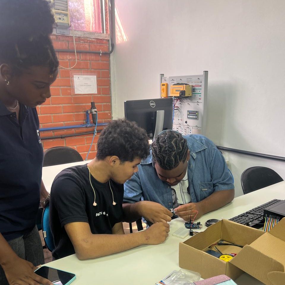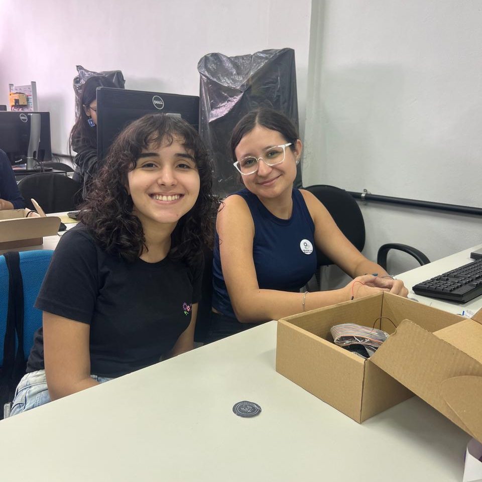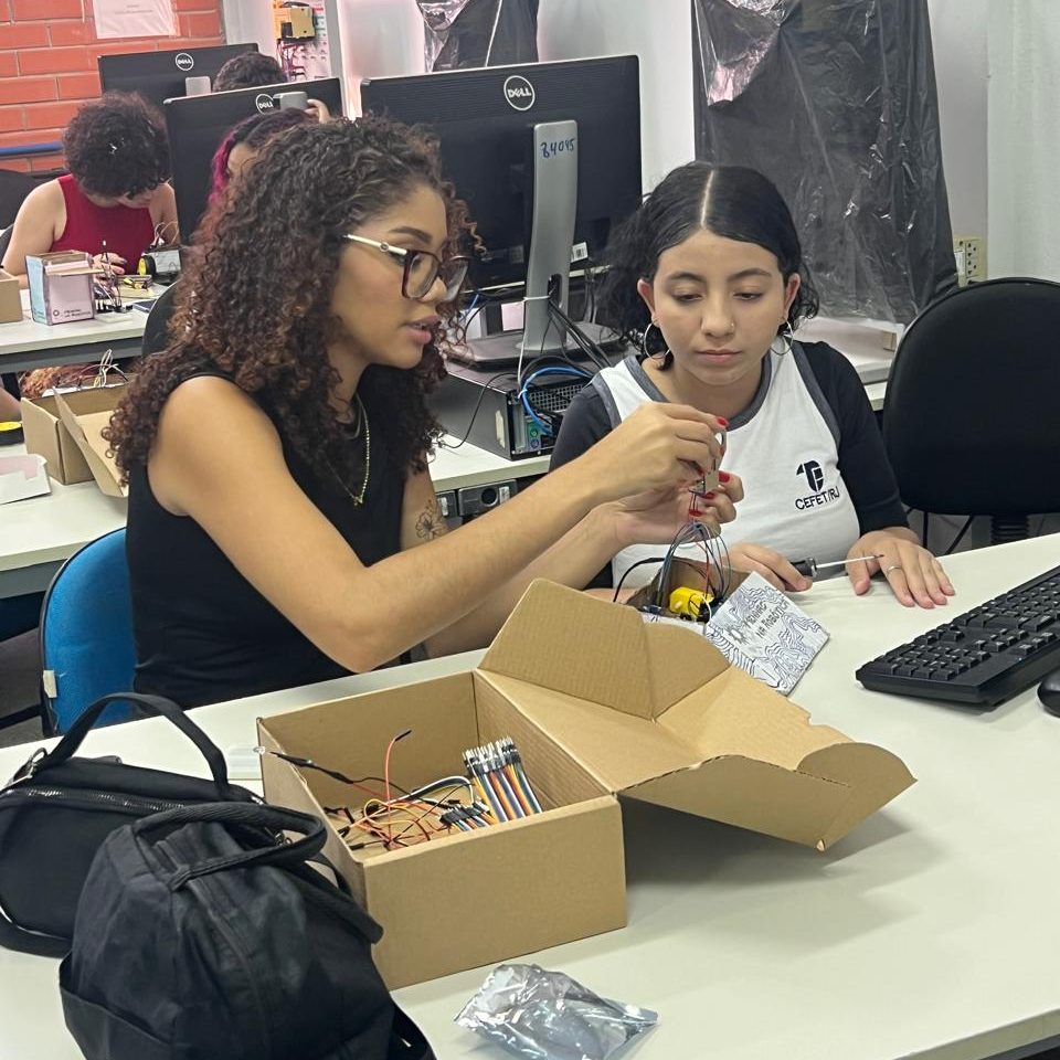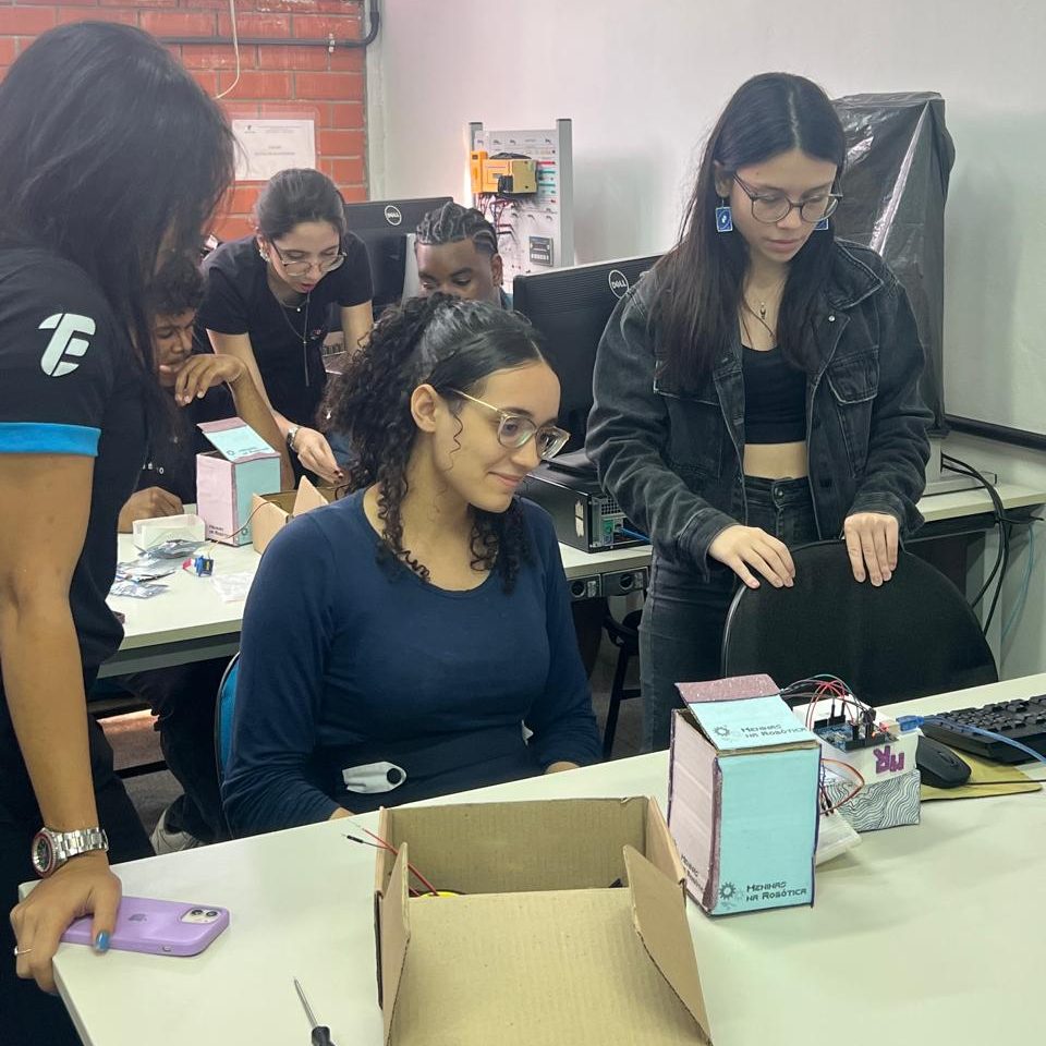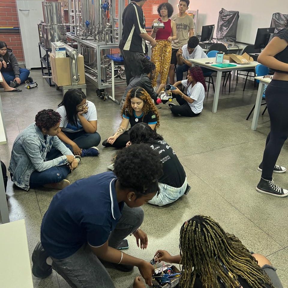 Além das atividades práticas, as integrantes compartilharam suas experiências no curso de Engenharia e no próprio projeto, reforçando a importância da representatividade feminina na tecnologia e incentivando mais meninas a se conectarem com a ciência.