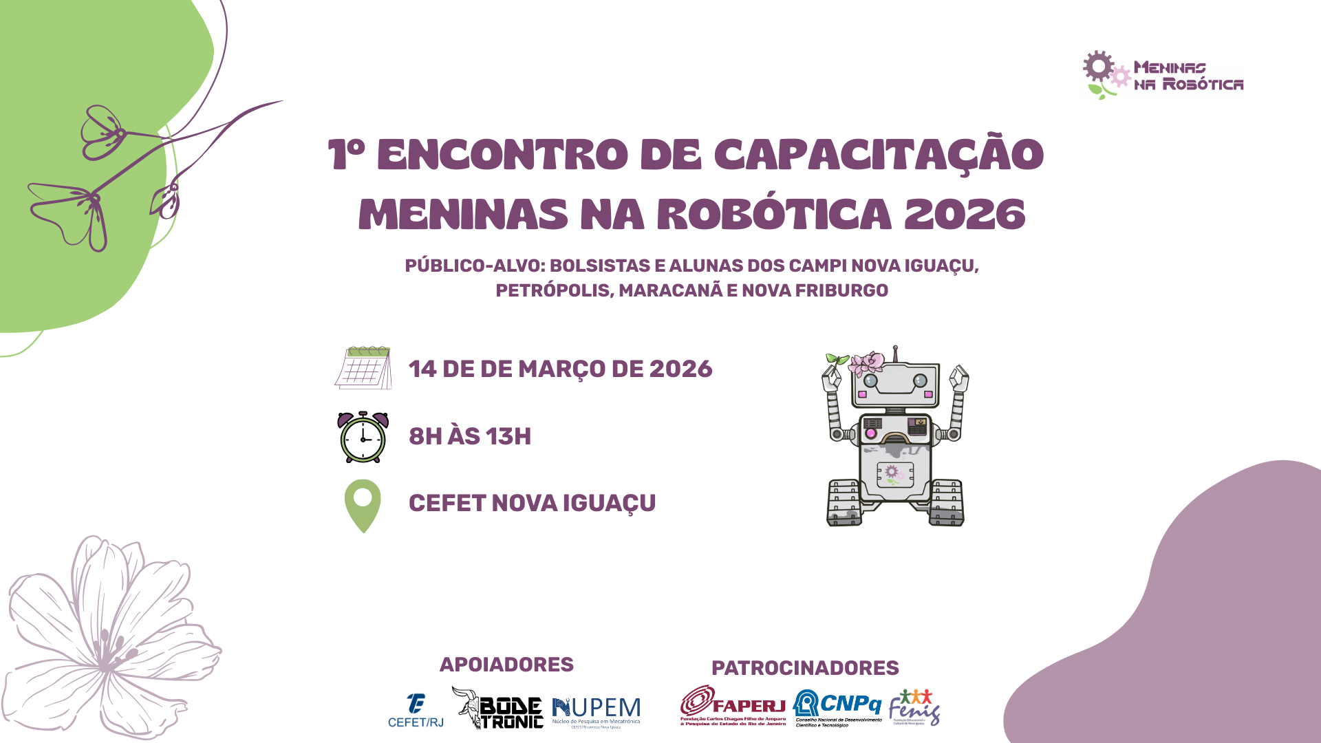 No dia 14 de março, vai rolar um encontro super especial com as Meninas na Robótica no CEFET/RJ – Campus Nova Iguaçu. Teremos uma programação repleta de atividades, com oficinas práticas e palestras!