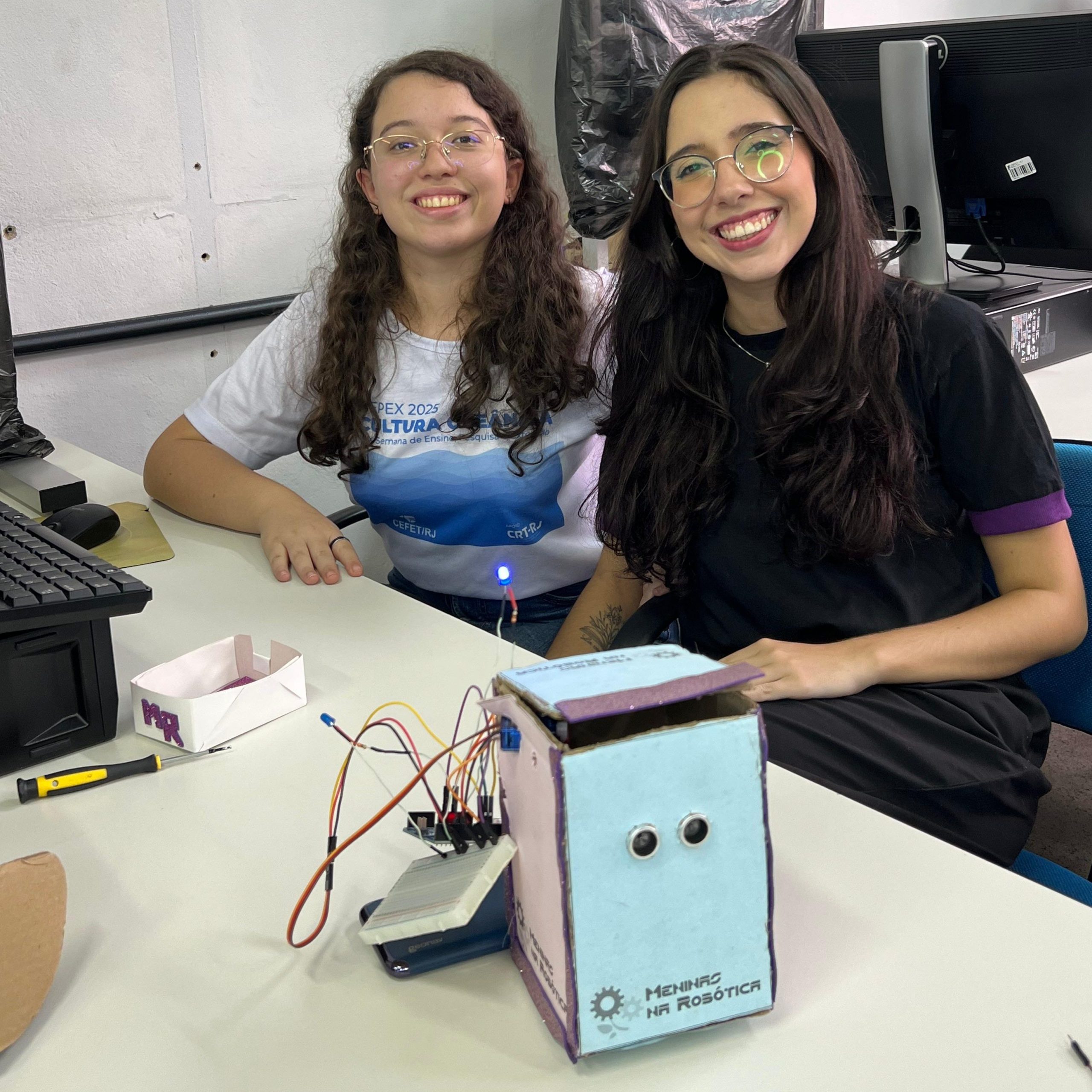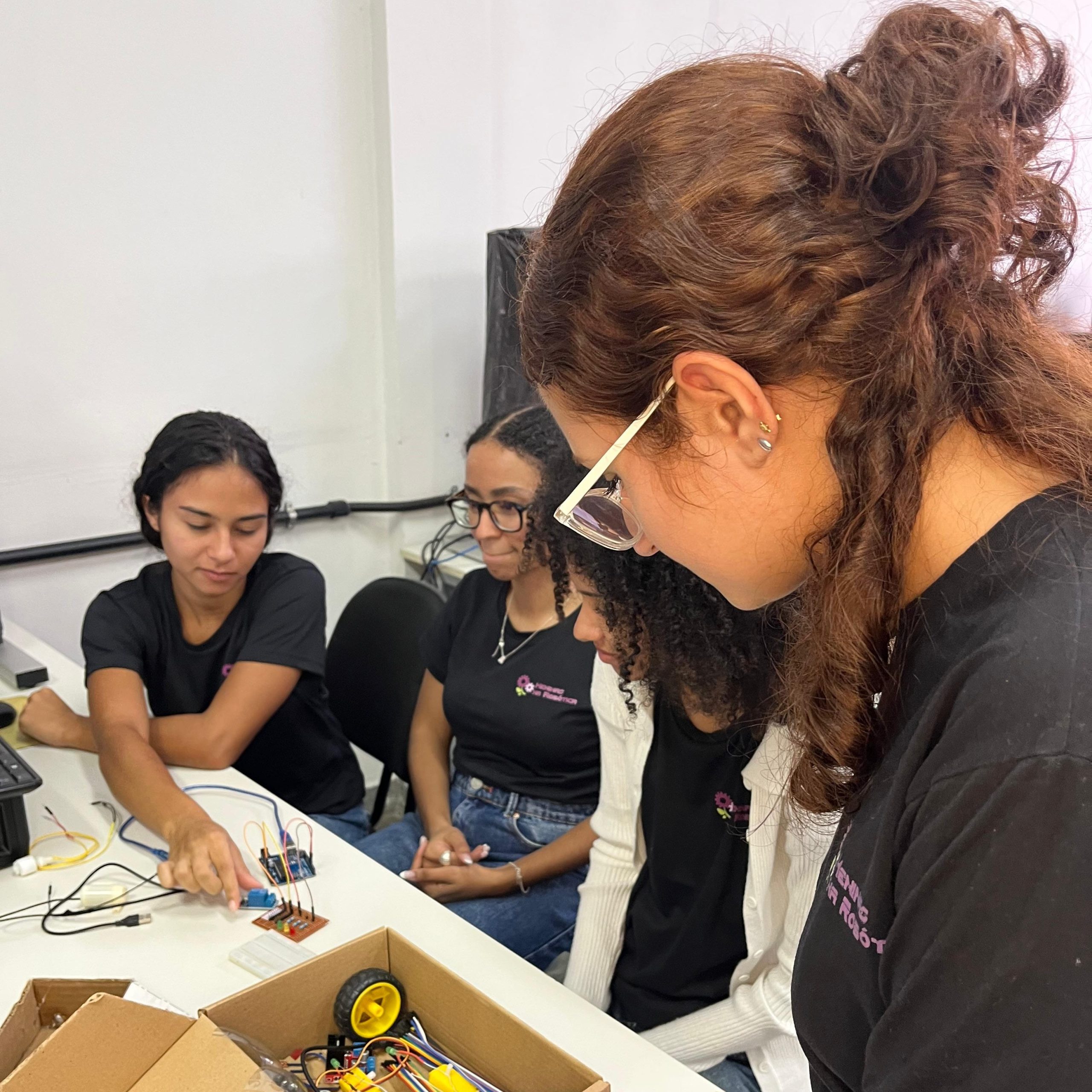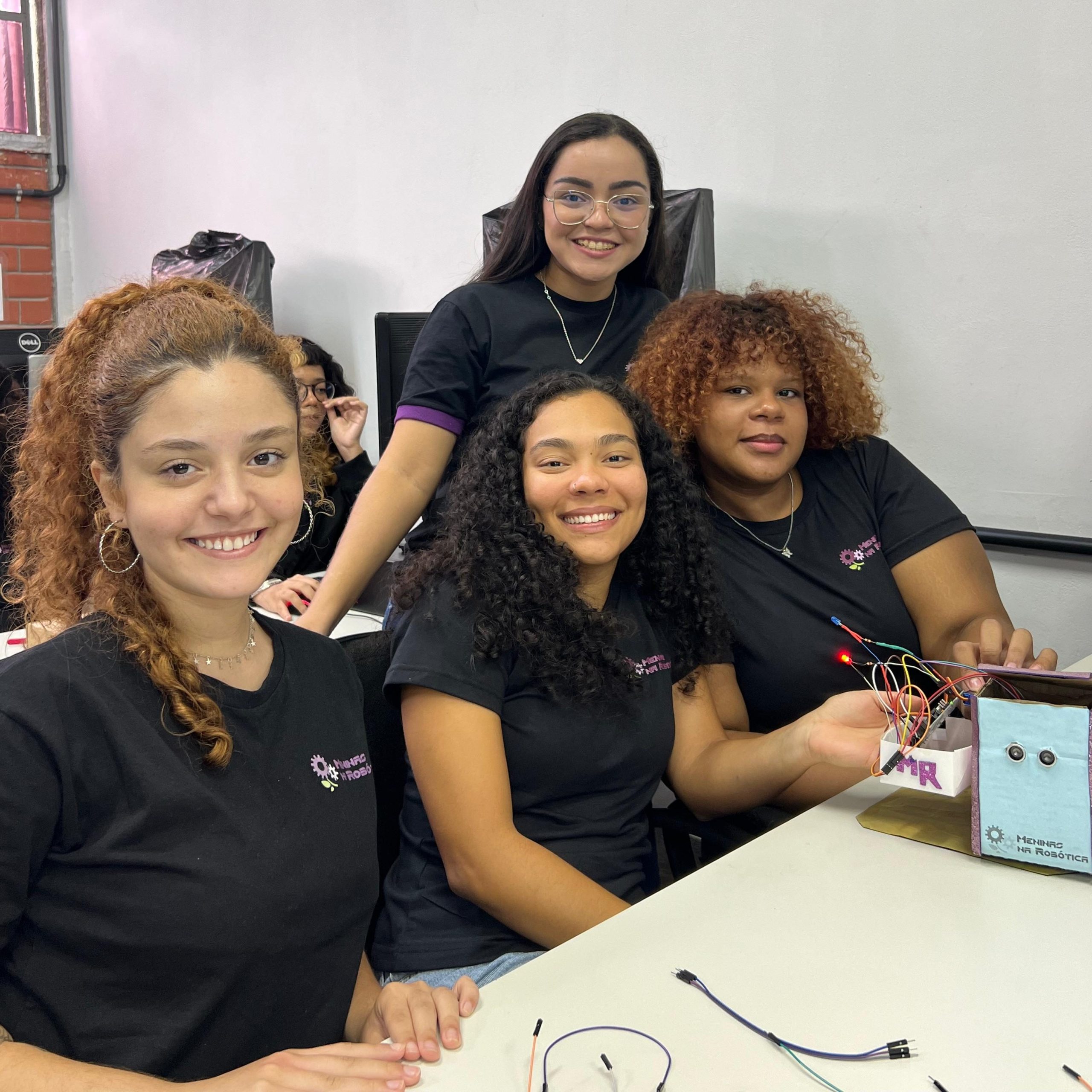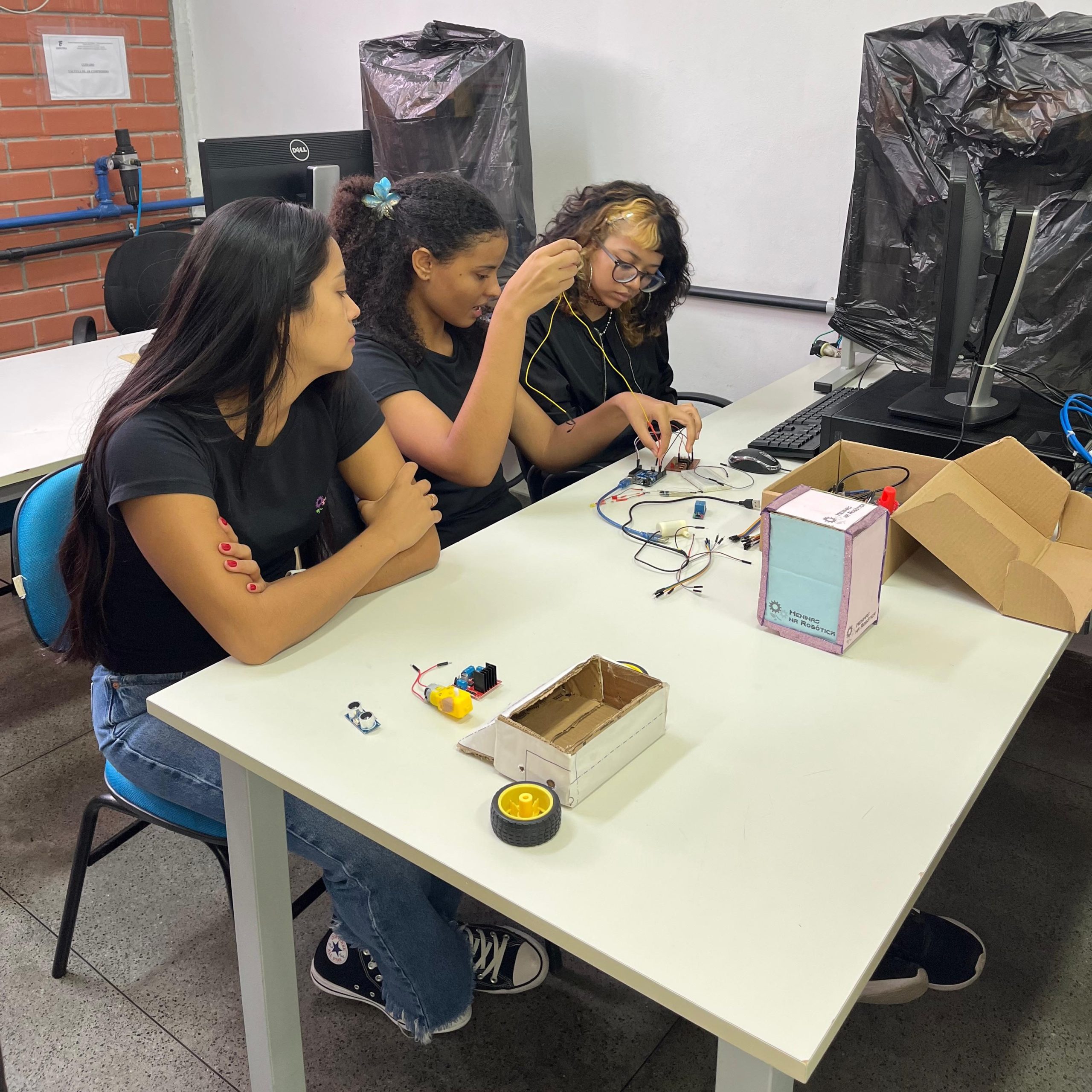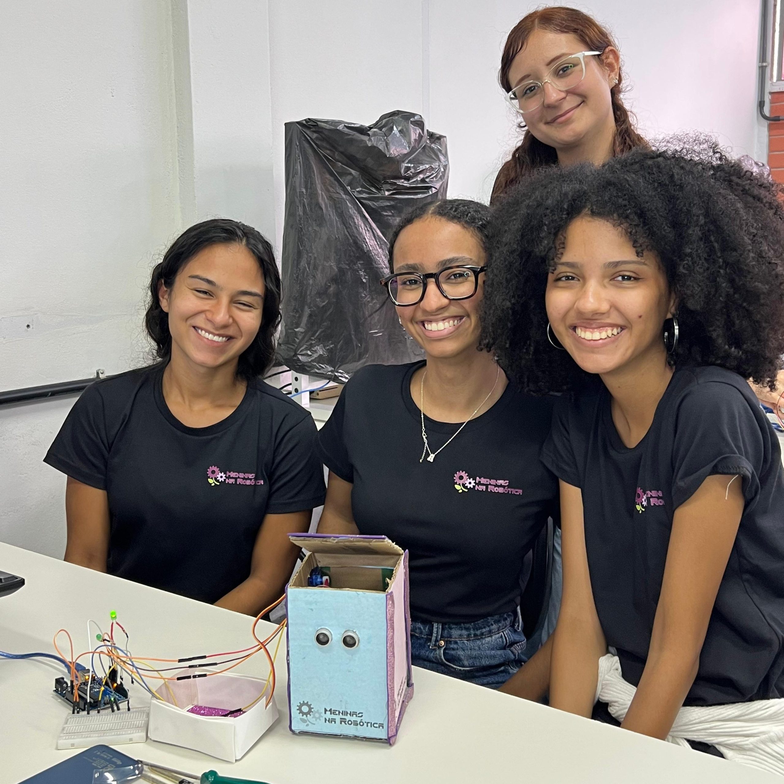 Na parte técnica, as participantes desenvolveram miniprojetos práticos, com o objetivo de estimular o aprendizado mão na massa e o trabalho em equipe. Entre os projetos desenvolvidos, destacam-se o carrinho ultrassônico, a lixeira automatizada com sensor, a horta automatizada e o ventilador controlado por circuito eletrônico. Essas atividades proporcionaram uma vivência introdutória em conceitos de eletrônica, automação e programação.