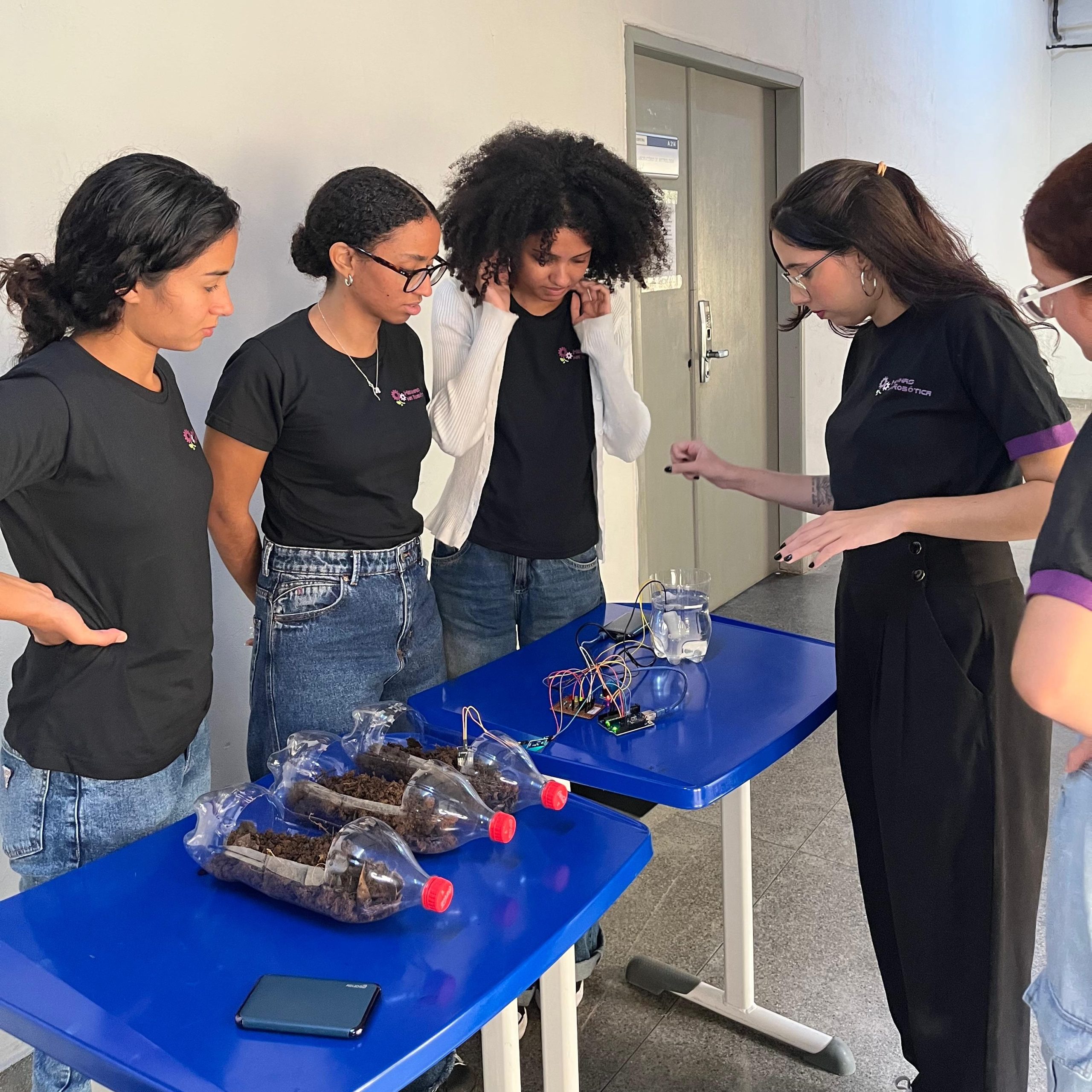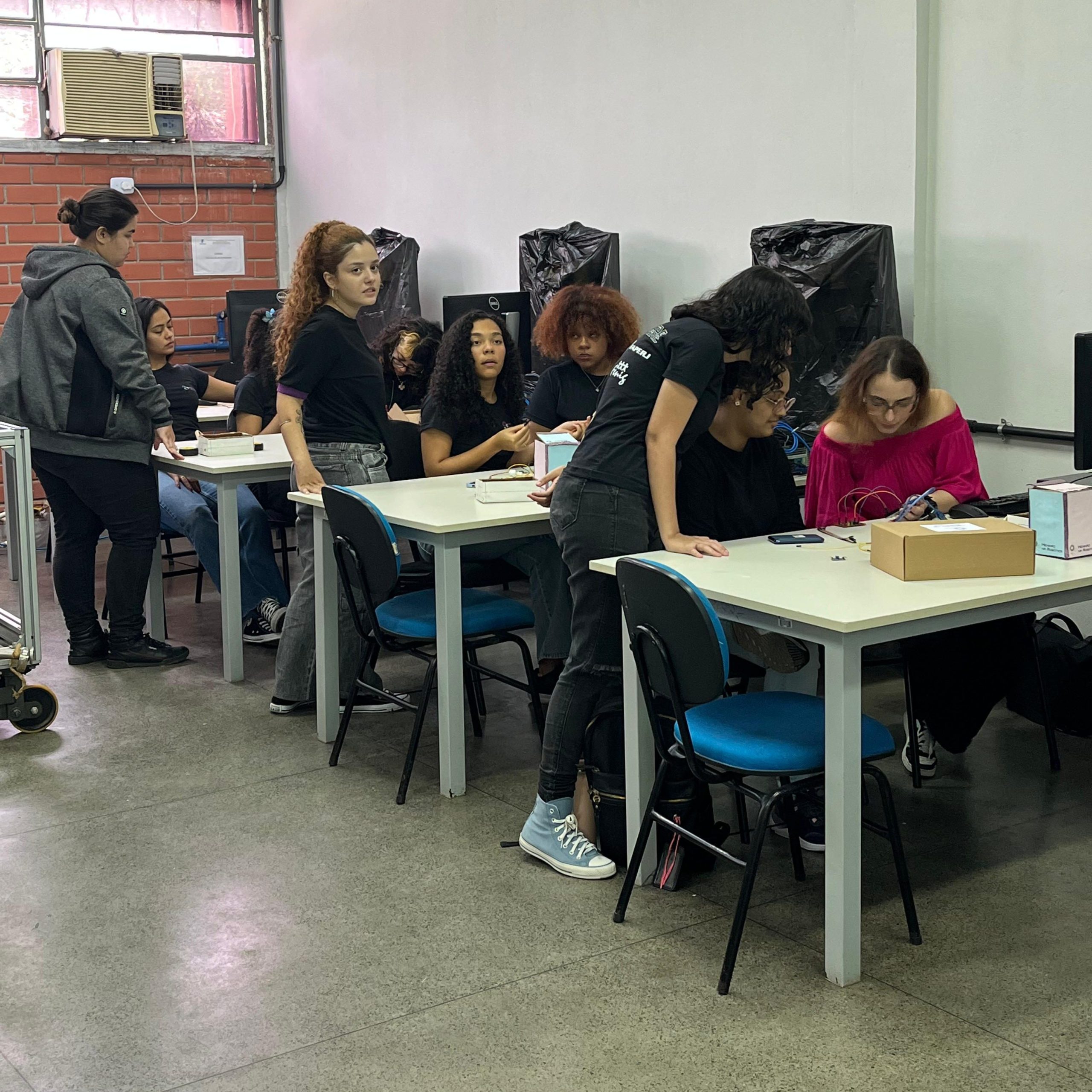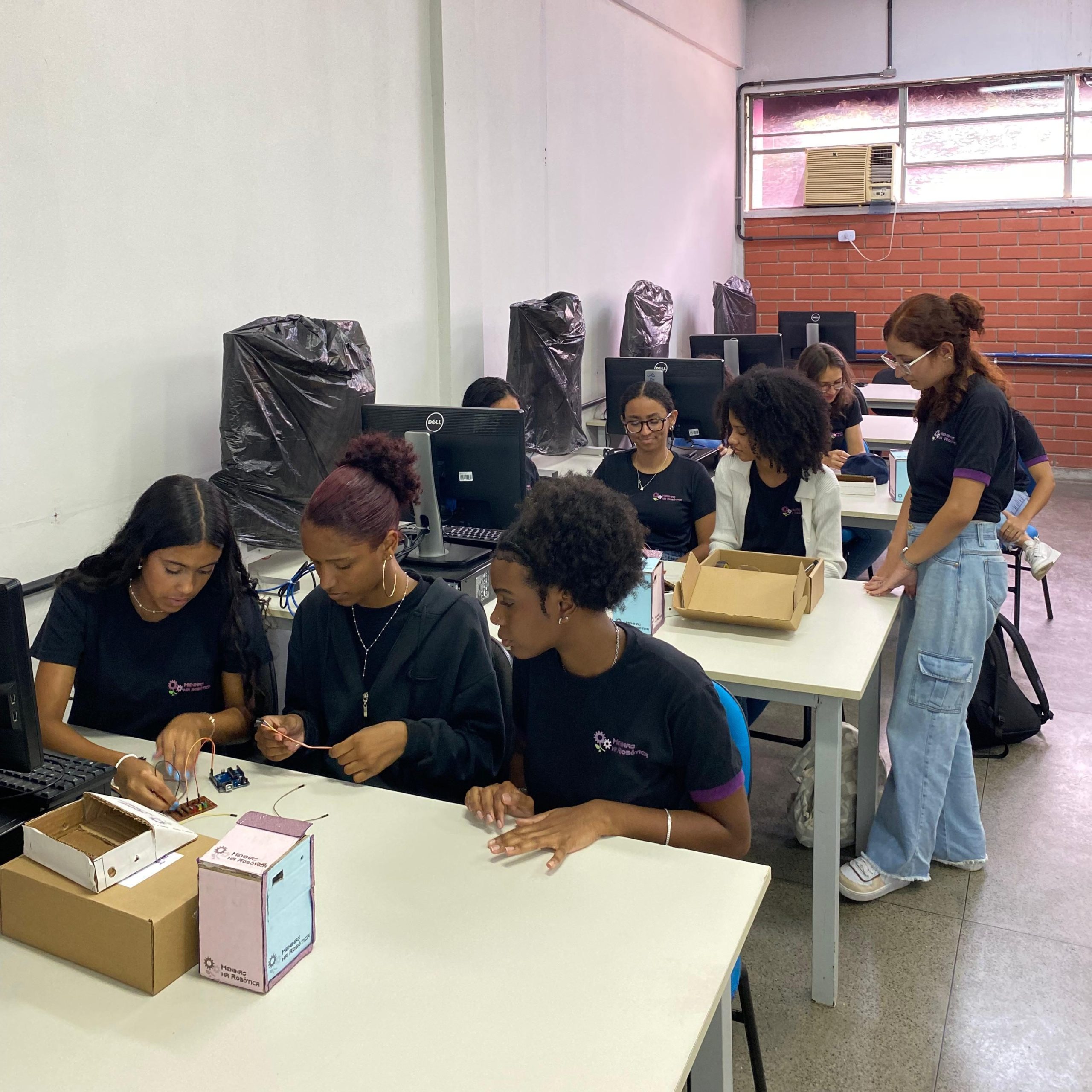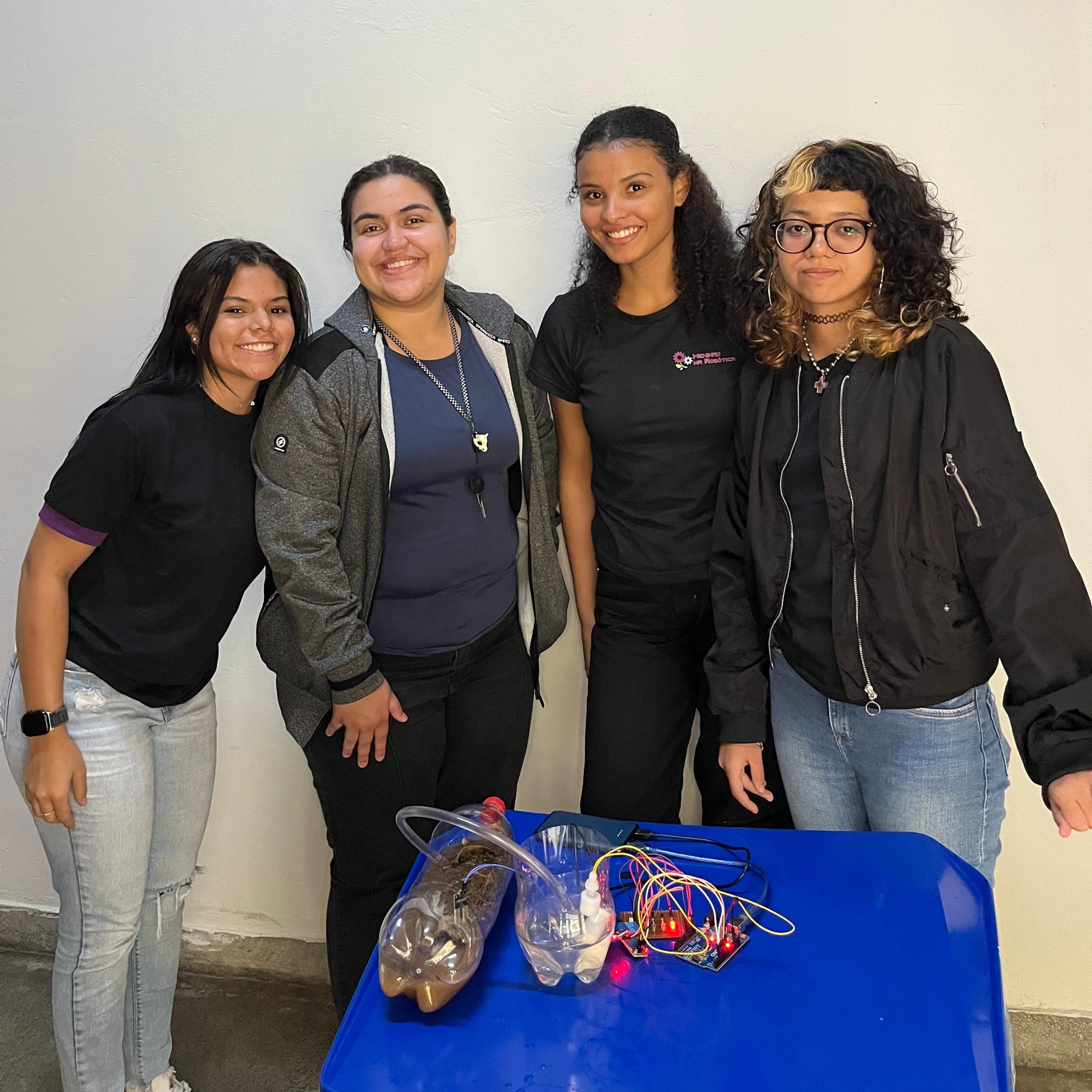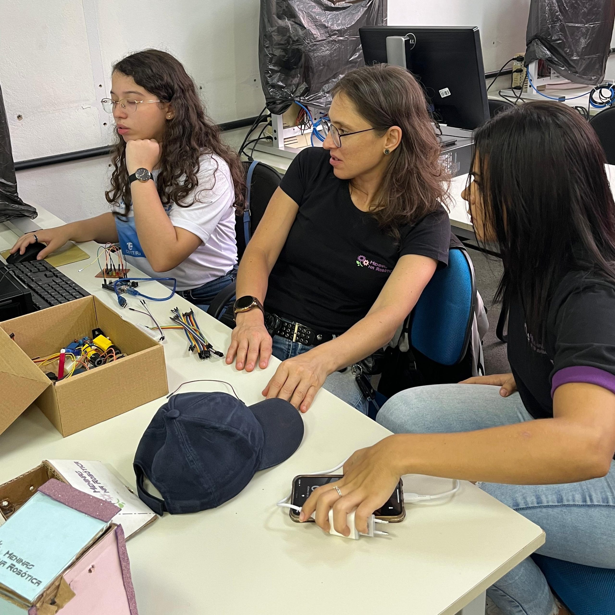 Na parte técnica, as participantes desenvolveram miniprojetos práticos, com o objetivo de estimular o aprendizado mão na massa e o trabalho em equipe. Entre os projetos desenvolvidos, destacam-se o carrinho ultrassônico, a lixeira automatizada com sensor, a horta automatizada e o ventilador controlado por circuito eletrônico. Essas atividades proporcionaram uma vivência introdutória em conceitos de eletrônica, automação e programação.