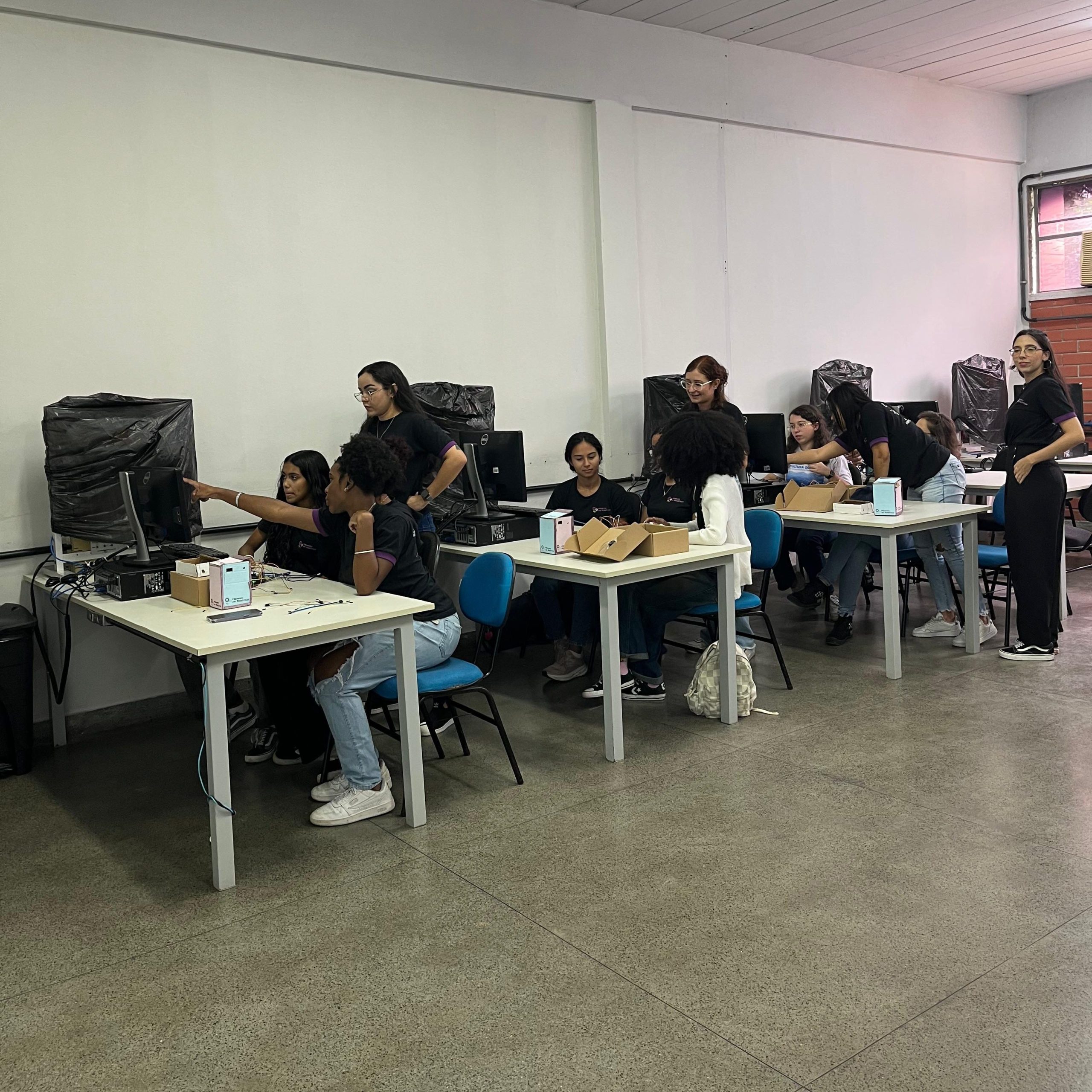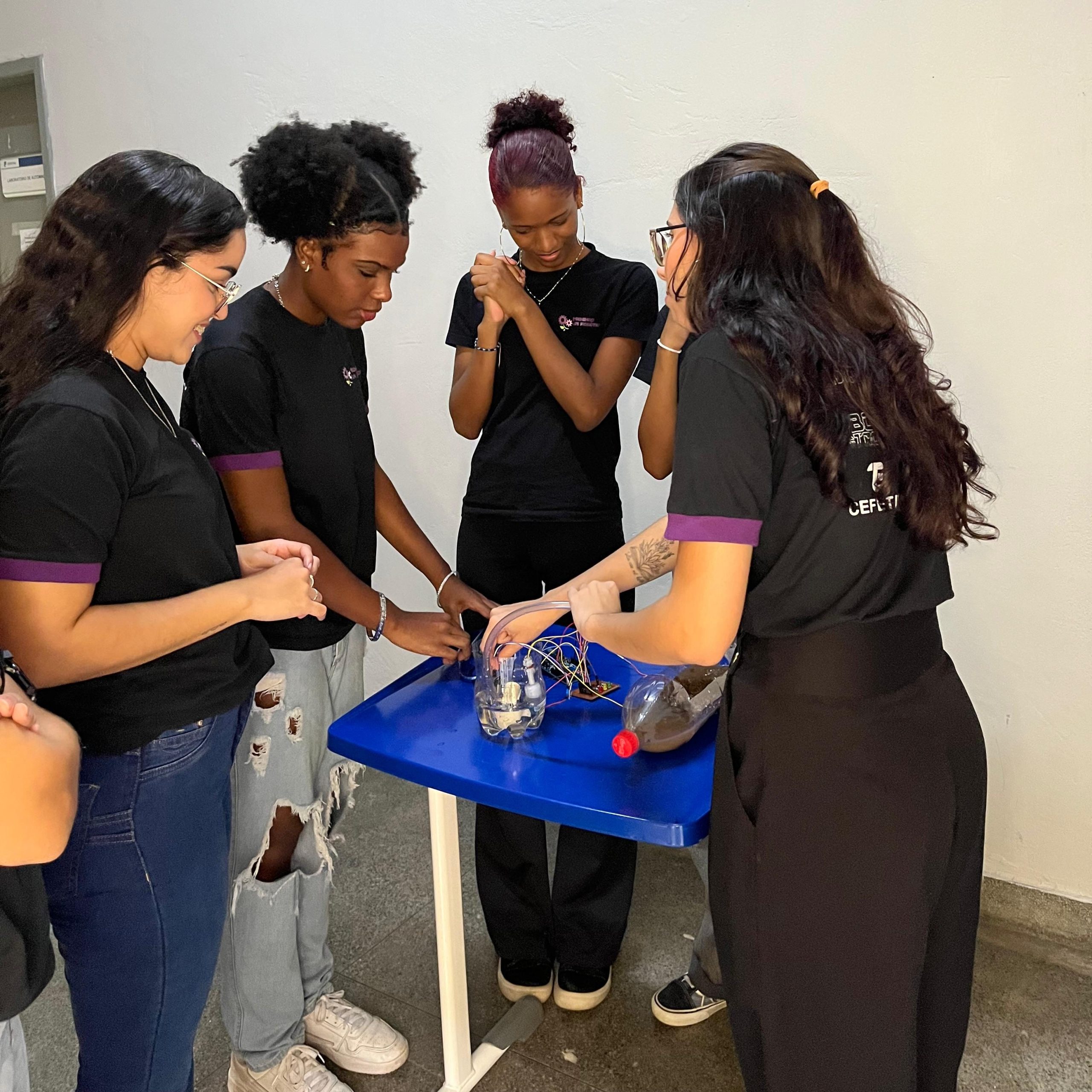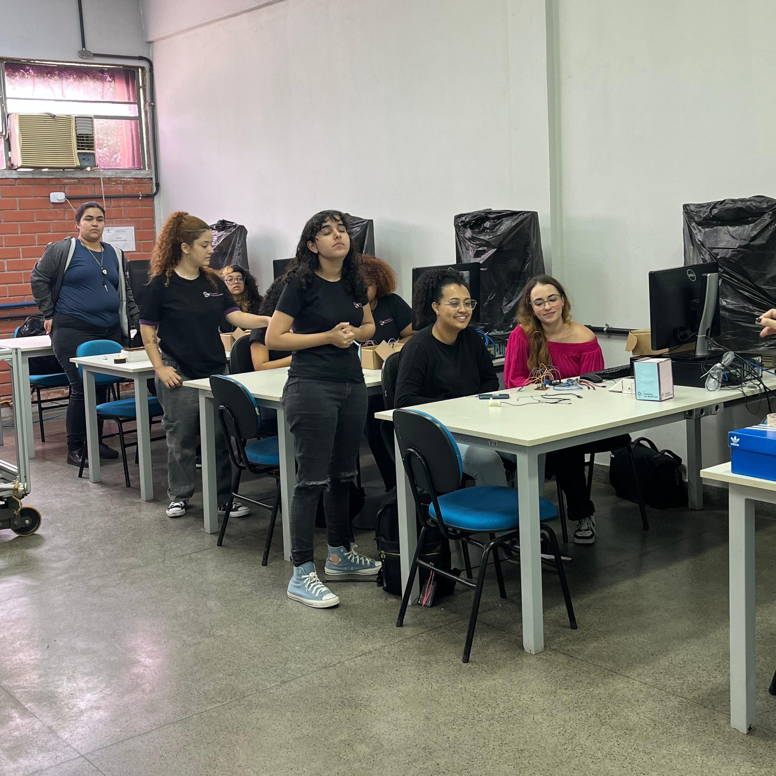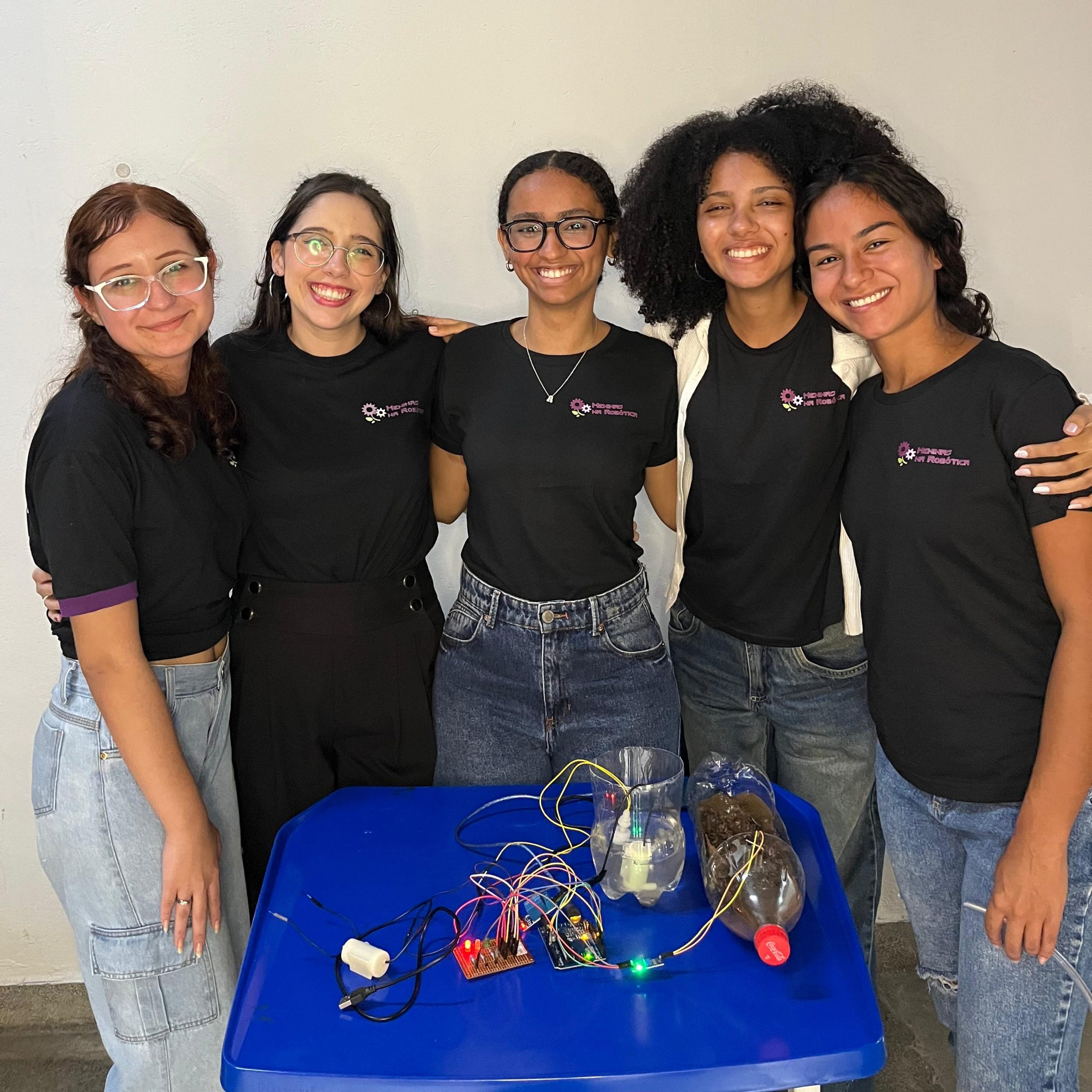 Na parte técnica, as participantes desenvolveram miniprojetos práticos, com o objetivo de estimular o aprendizado mão na massa e o trabalho em equipe. Entre os projetos desenvolvidos, destacam-se o carrinho ultrassônico, a lixeira automatizada com sensor, a horta automatizada e o ventilador controlado por circuito eletrônico. Essas atividades proporcionaram uma vivência introdutória em conceitos de eletrônica, automação e programação.