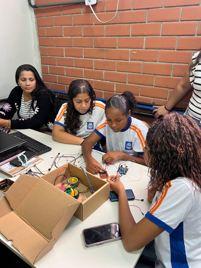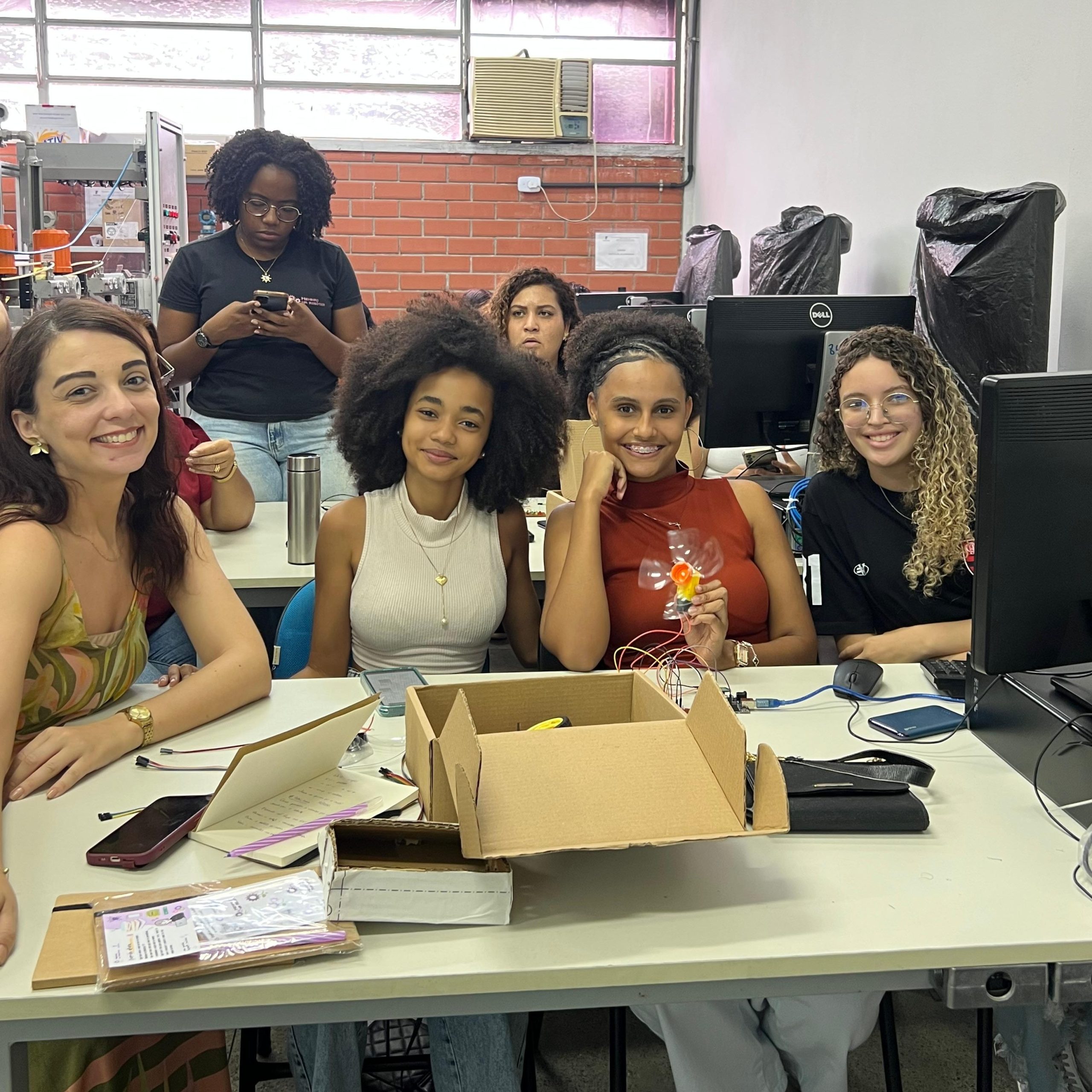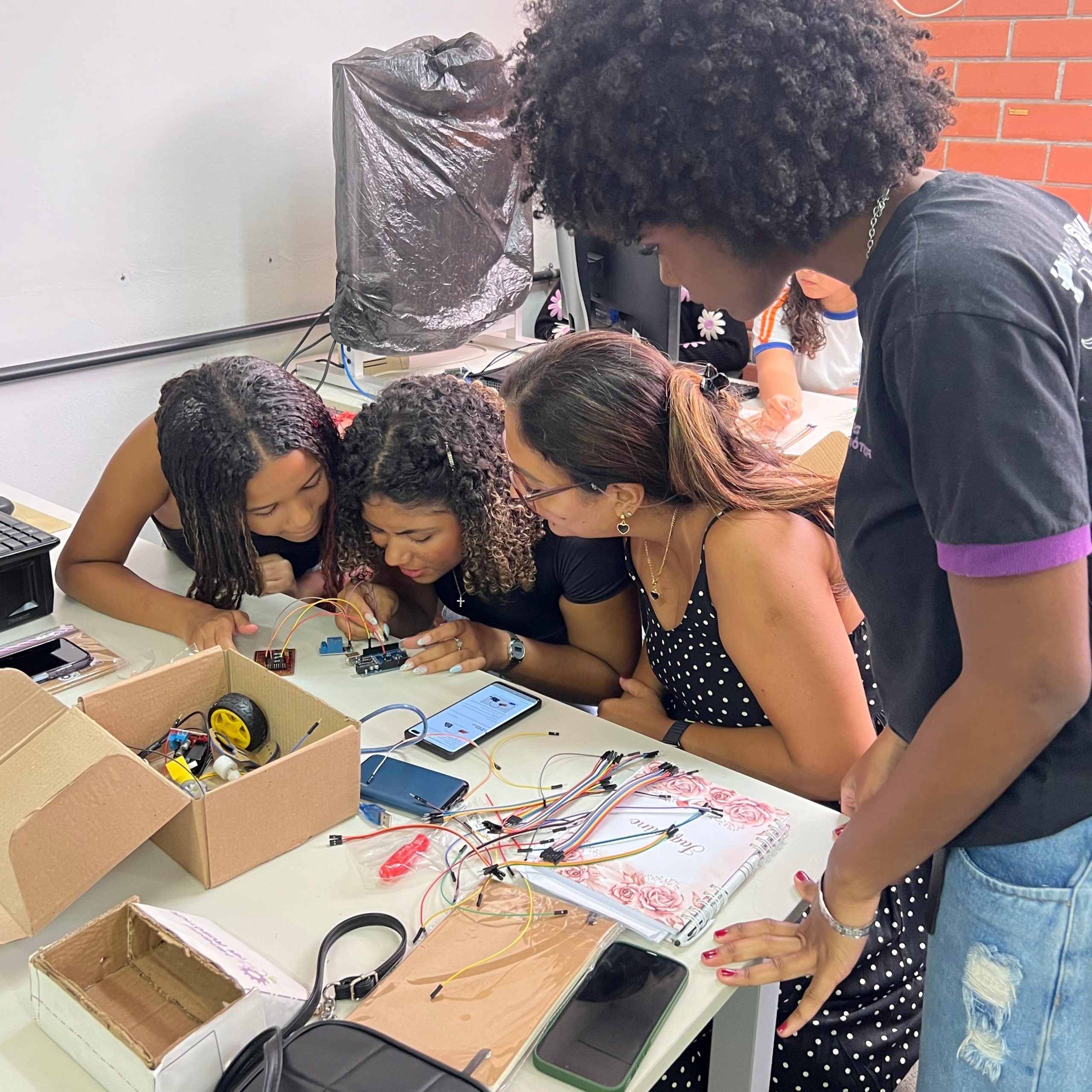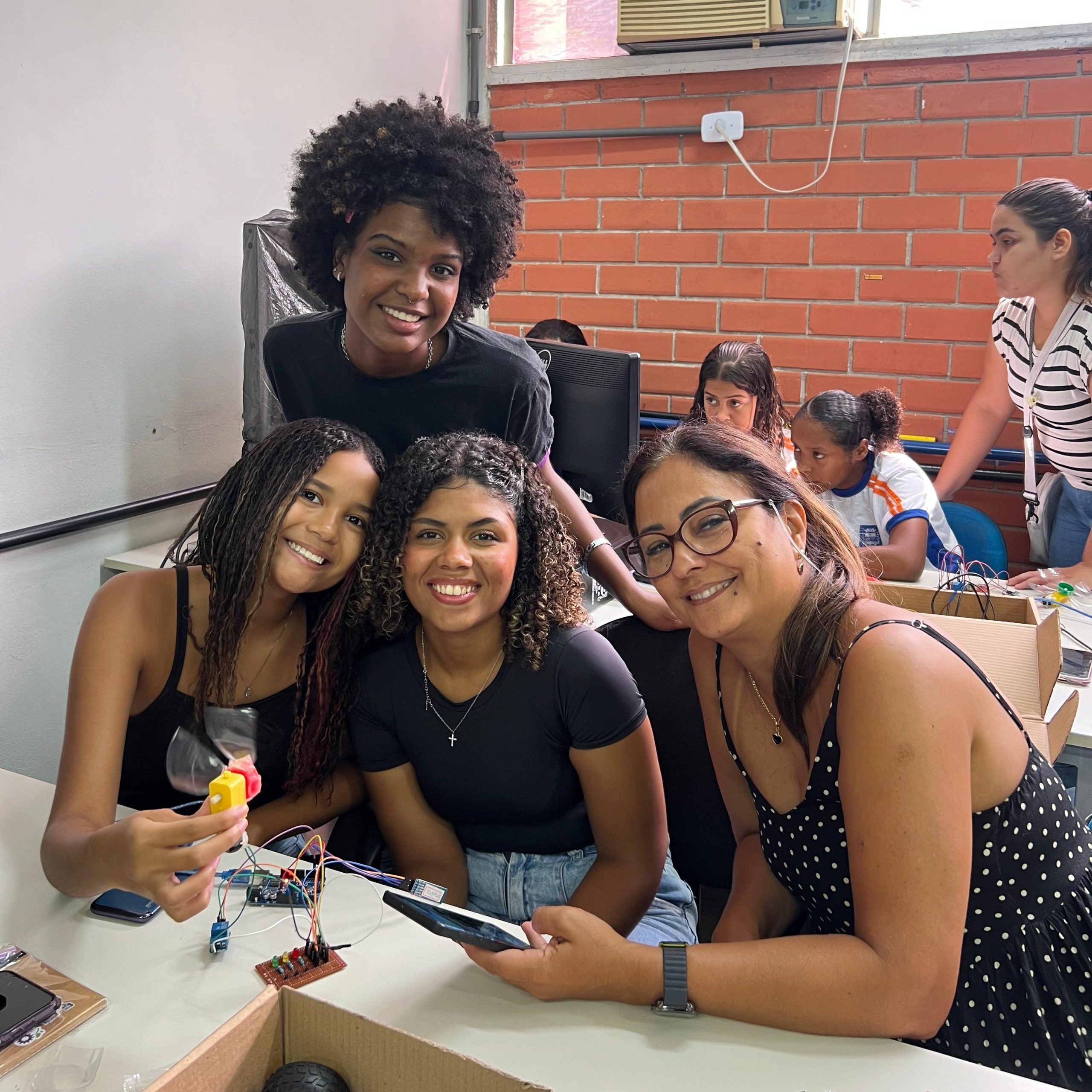 Na parte final da programação, foi realizada a capacitação técnica com o desenvolvimento de miniprojetos, como a horta automatizada, o carrinho ultrassônico e o ventilador. As atividades práticas possibilitaram às participantes o contato direto com conceitos de eletrônica, automação e trabalho em equipe.
