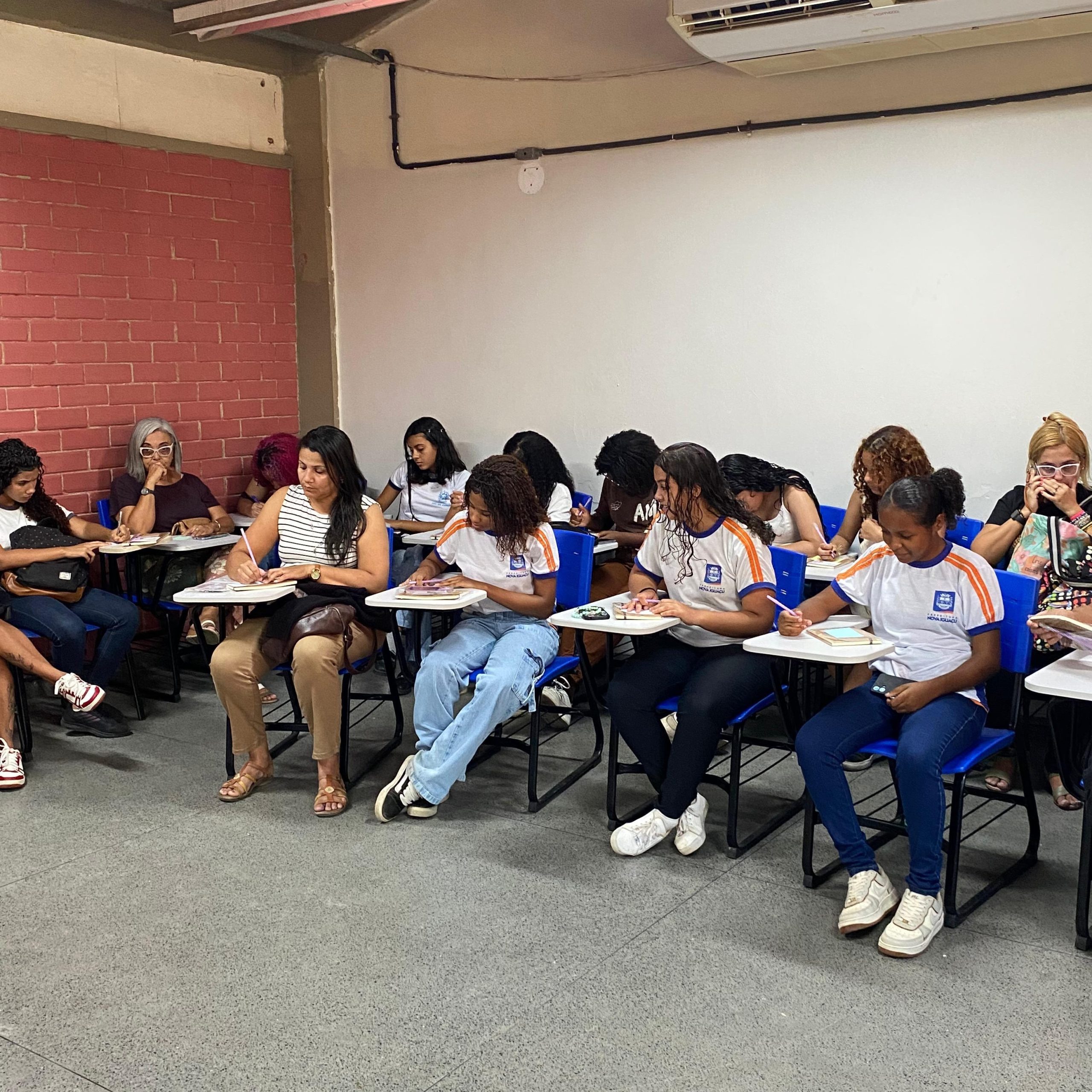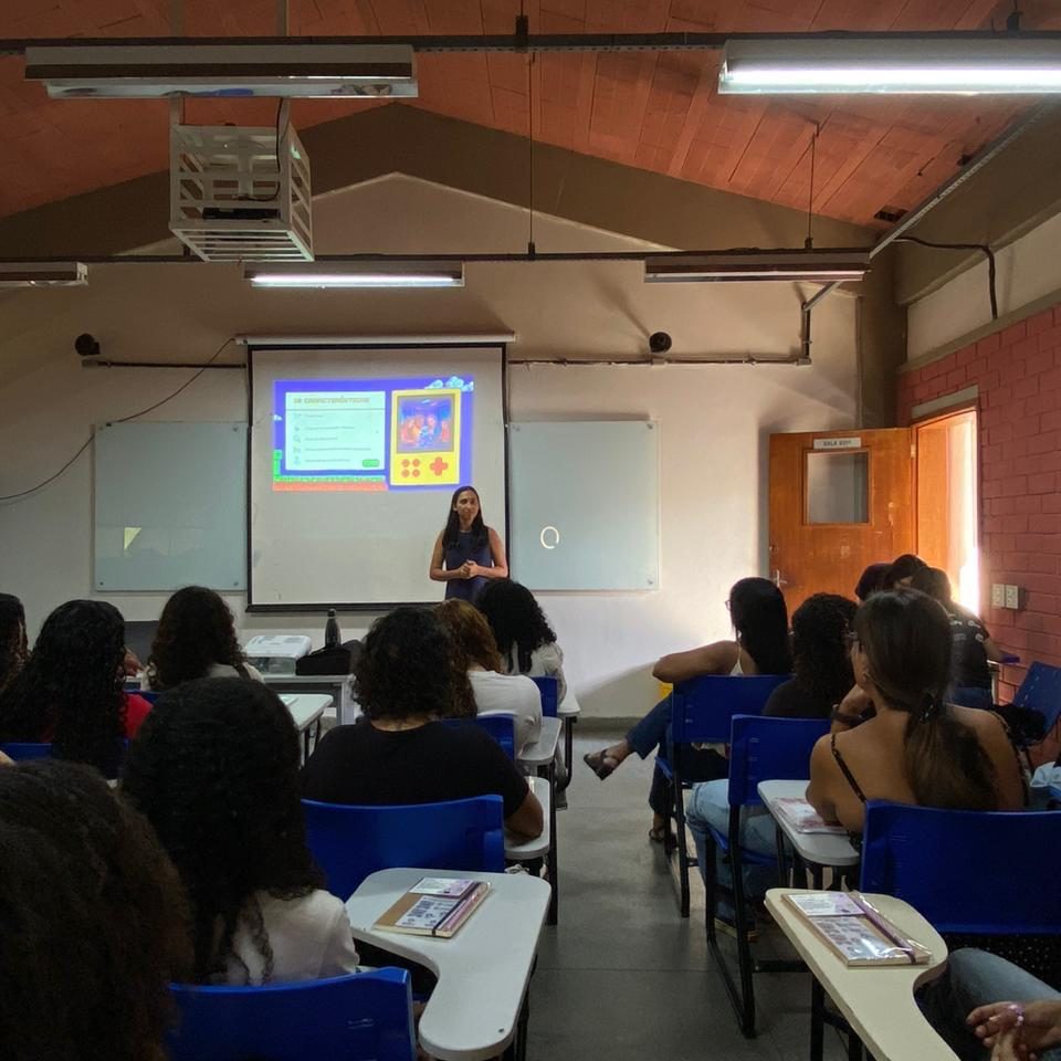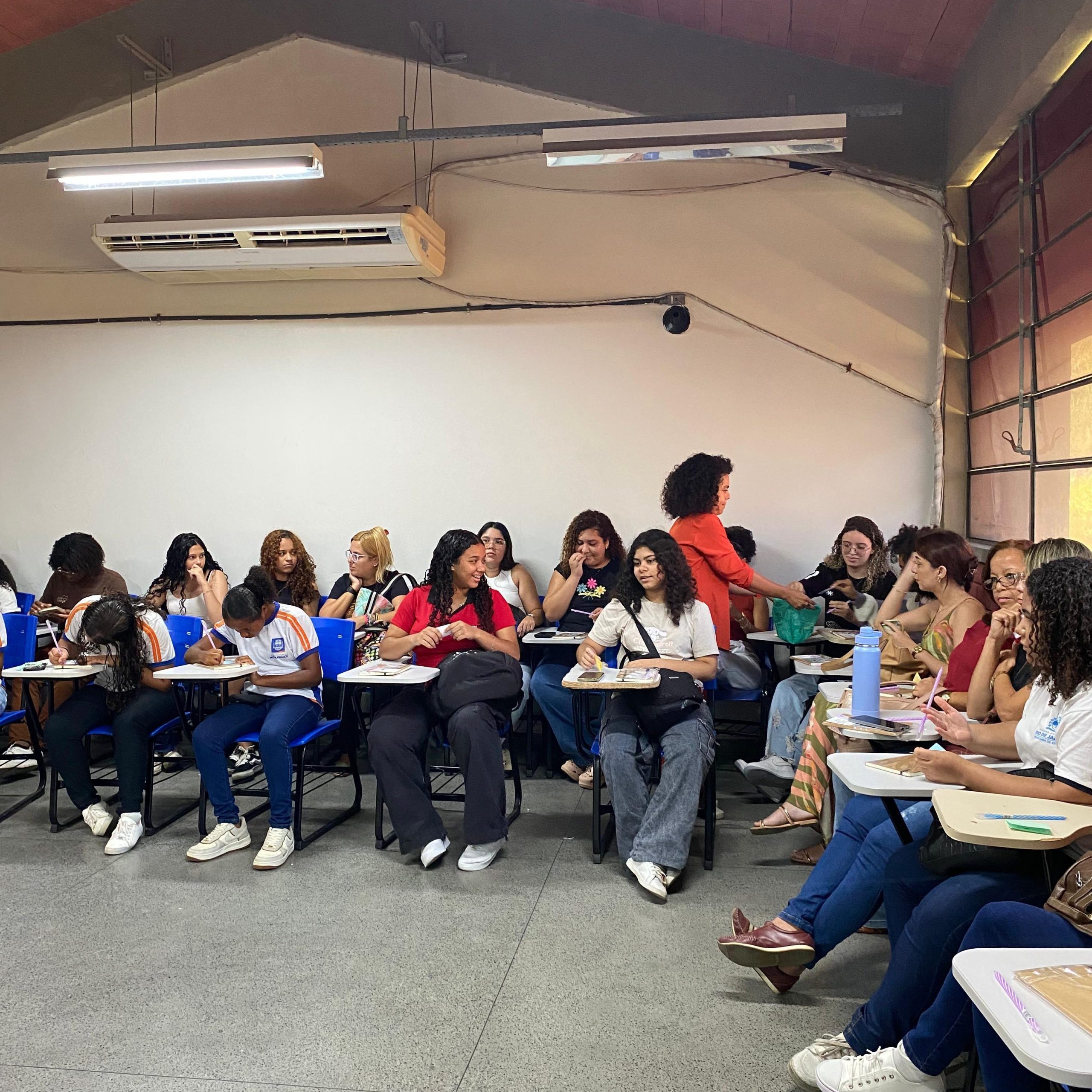 Na sequência, foi realizada a capacitação sociopedagógica conduzida pela professora Carla Romão, abordando a temática da violência contra a mulher. A atividade proporcionou um momento de reflexão e conscientização sobre o tema, destacando a importância da informação e do apoio em situações de vulnerabilidade.