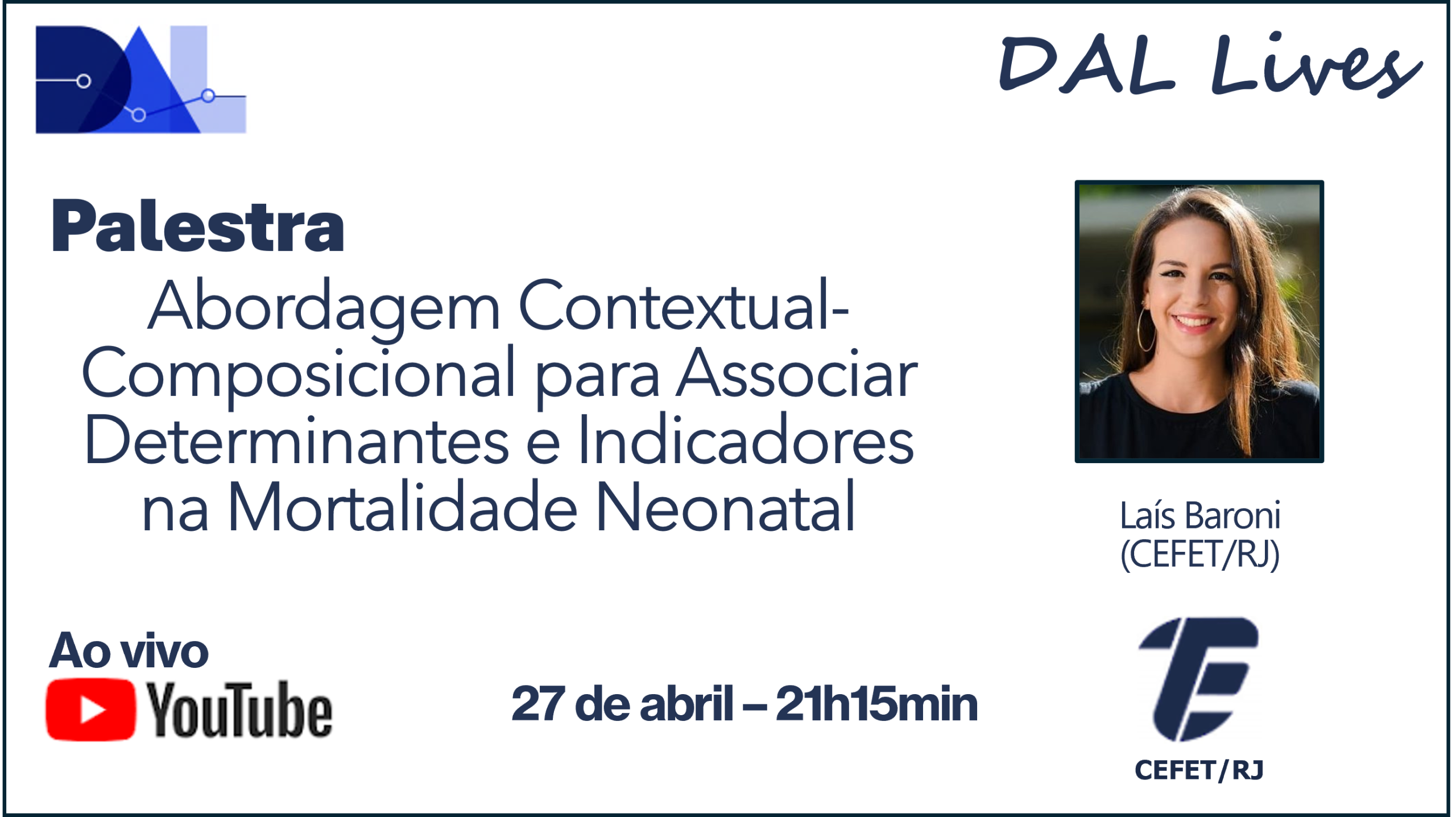 O Data Analytics Lab (DAL) é um grupo de pesquisa do CEFET/RJ, registrado no CNPq, dedicado ao desenvolvimento de métodos e ferramentas inovadoras em Análise de Dados e Mineração de Dados, com ênfase especial na análise de séries temporais. Suas atividades abrangem desde a investigação de técnicas de predição até a detecção de eventos, incluindo anomalias, pontos de mudança, desvios de conceito, descoberta de padrões e identificação de motifs. O DAL atua na fronteira entre pesquisa básica e aplicada, buscando soluções robustas para problemas que envolvem dados multivariados, não estacionários e provenientes de cenários complexos, como monitoramento em tempo real, big data e sistemas críticos.